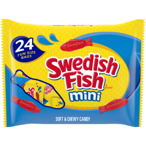 Shine a light on your next snacking session with SWEDISH FISH Mini Glow Ups Strawberry-Watermelon Soft & Chewy Candy. These fun, fish-shaped candy gummies feature edible confetti that glows under blacklight and a sweet strawberry-watermelon flavor that delights your taste buds with every chewy bite. The edible confetti in this unique candy contains turmeric extract, which gives it its fun glow (Hint: You cannot taste it). The first-ever gummy candy fish that glows, SWEDISH FISH Mini Glow Ups are a must-try for fans of bold, adventurous candy experiences. Serve this playful pink candy at your next blacklight party, pack it as a crowd-pleasing snack for a concert or music festival, or simply enjoy it as a fun, satisfying treat during movie nights and gaming marathons. Whether you’re solo snacking at home or sharing with friends, these glowing gummy candies light up any occasion. This bagged candy is a great pantry snack for tossing in your backpack so you can take these show-stopping gummy snacks on the go. Each bag of candy offers enough for a single event or to enjoy over time. Brighten your day with SWEDISH FISH Mini Glow Ups Strawberry-Watermelon Candy.
