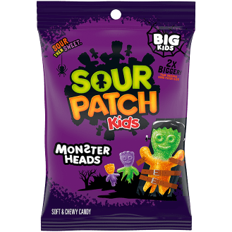 Make your house a trick-or-treating hot spot with SOUR PATCH KIDS Big Kids Monster Heads Halloween Candy. SOUR PATCH KIDS Soft & Chewy Candy contains sour candies in watermelon, black raspberry, and orange fruit flavors for a SOUR THEN SWEET treat to satisfy your taste buds. Add a little mischief-filled fun to your Halloween treats with this soft candy in unique kid shapes that are two times larger than the original gummy candies. With three different flavor combinations, this SOUR PATCH KIDS trick or treat candy is great to snack on during Halloween movies, and the bagged candy is wonderful for trunk or treat events. A fantastic addition to your Halloween party supplies, these sour gummy snacks are great for arranging alongside Halloween decor, using in a festive candy wreath, or giving to guests as Halloween party favors and game prizes. Perfect for tossing in Halloween candy bags and Halloween treat bags. A fat free food, this fruit flavored candy is wonderful for all the sweet moments in your life, whether you're snacking on this sour candy at home or enjoying on the go snacks. With this Halloween candy pack of chewy snacks, you'll be ready for all the trick-or-treaters at your door.