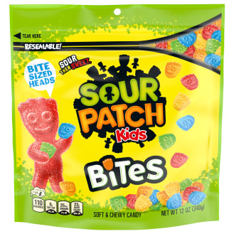Bring some mischief-filled fun to any occasion with SOUR PATCH KIDS Bites Soft & Chewy Candy. These bite-sized chewy candies pack mouth-puckering flavor into a mini, ultra-munchable treat to add excitement to your candy experience. A fat free food, this sour candy is the perfect sweet end to your day. Keep these sour gummy snacks on hand for a quick sour treat, as a fun dessert topper or as party favors for holiday parties and birthday celebrations. SOUR PATCH KIDS candy also makes a great movie theater candy to snack on during your favorite flick. Share this bagged candy or stash it in desk drawers, lockers or backpacks for sour candies on-the-go. Each package is resealable to ensure the sour candies stay soft, chewy and full of flavor.