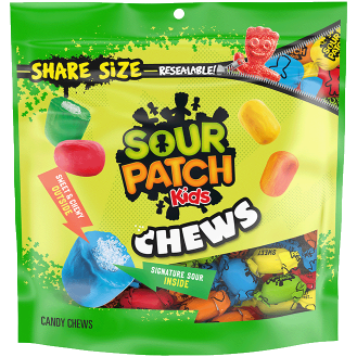 The candy that breaks all the rules, SOUR PATCH KIDS Chews Soft & Chewy Candy features a sweet and chewy outside plus a signature sour inside. Individually wrapped candy in yummy fruit flavors – including Redberry, Blue Raspberry, Orange, Lemon, and Lime – these candies are a wholly delicious sweet treat. Each share size bag of soft candy offers a sweet then sour treat to satisfy your taste buds while adding a little fun to your candy chews experience with the unique sour inside of these chewy snacks. SOUR PATCH KIDS sour candy chews are great for quick snacks, birthday treats, or party favors, and they make a fantastic movie theater candy to snack on during your favorite flick. The ultimate sweet and sour candy for solo snacking or sharing, this bagged candy is just the right size for tossing in backpacks and lockers, or adding to care packages for college students. Even better, the individually wrapped sour candies are easy to stash in pockets and purses, making them wonderful on the go snacks that are ready to enjoy whenever you're in the mood for deliciously fruity, sour and sweet candy!